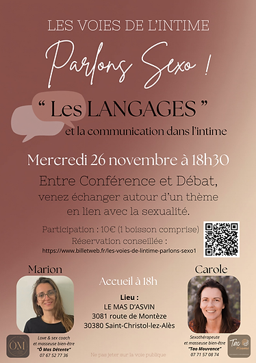 A partir de 18h, à Saint-Christol-lès-Alès, Le Mas d'Asvin nous accueille dans son magnifique lieu : un cadre convivial et bienveillant, où nous parlerons des LANGAGES dans l'intimité et de la COMMUNICATION amoureuse !
